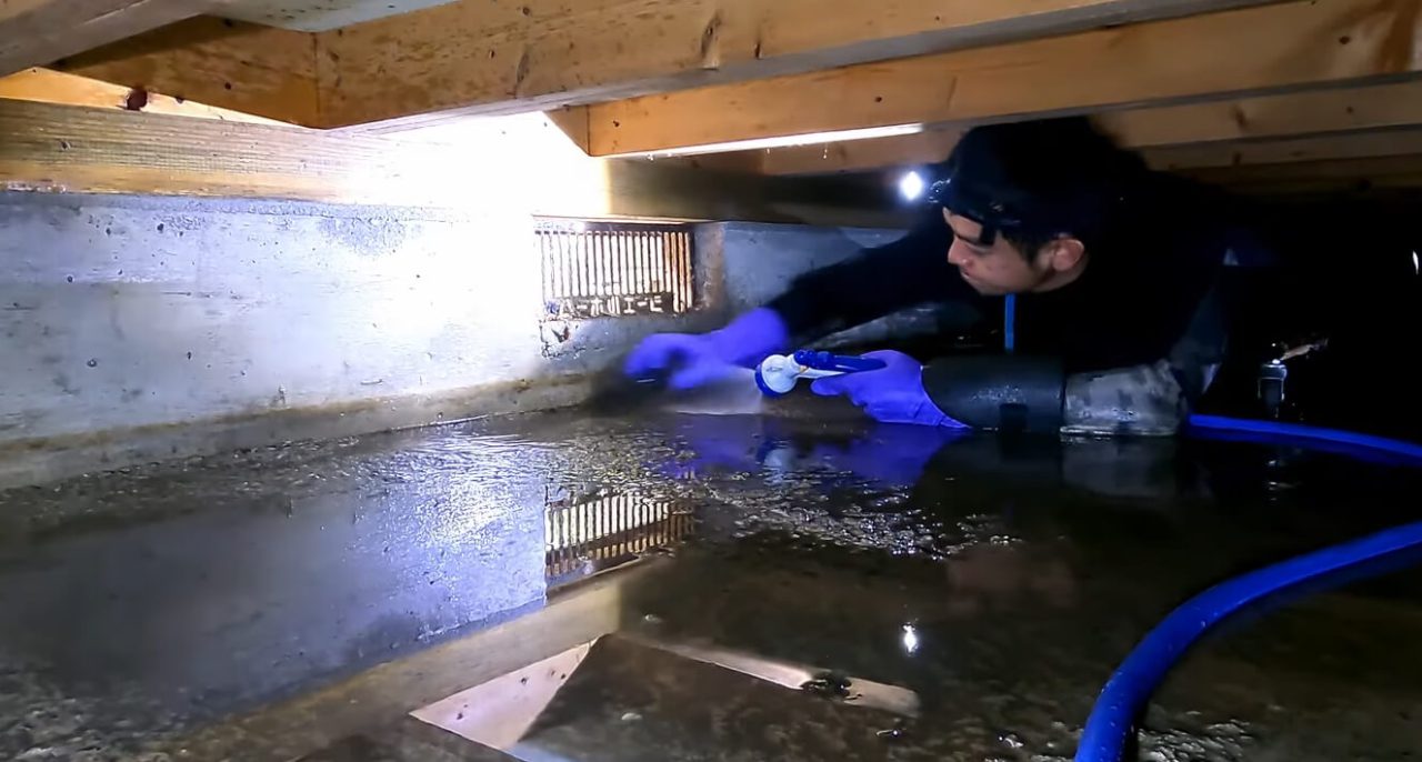 床下浸水によるコンクリート基礎の汚染の清掃方法を解説